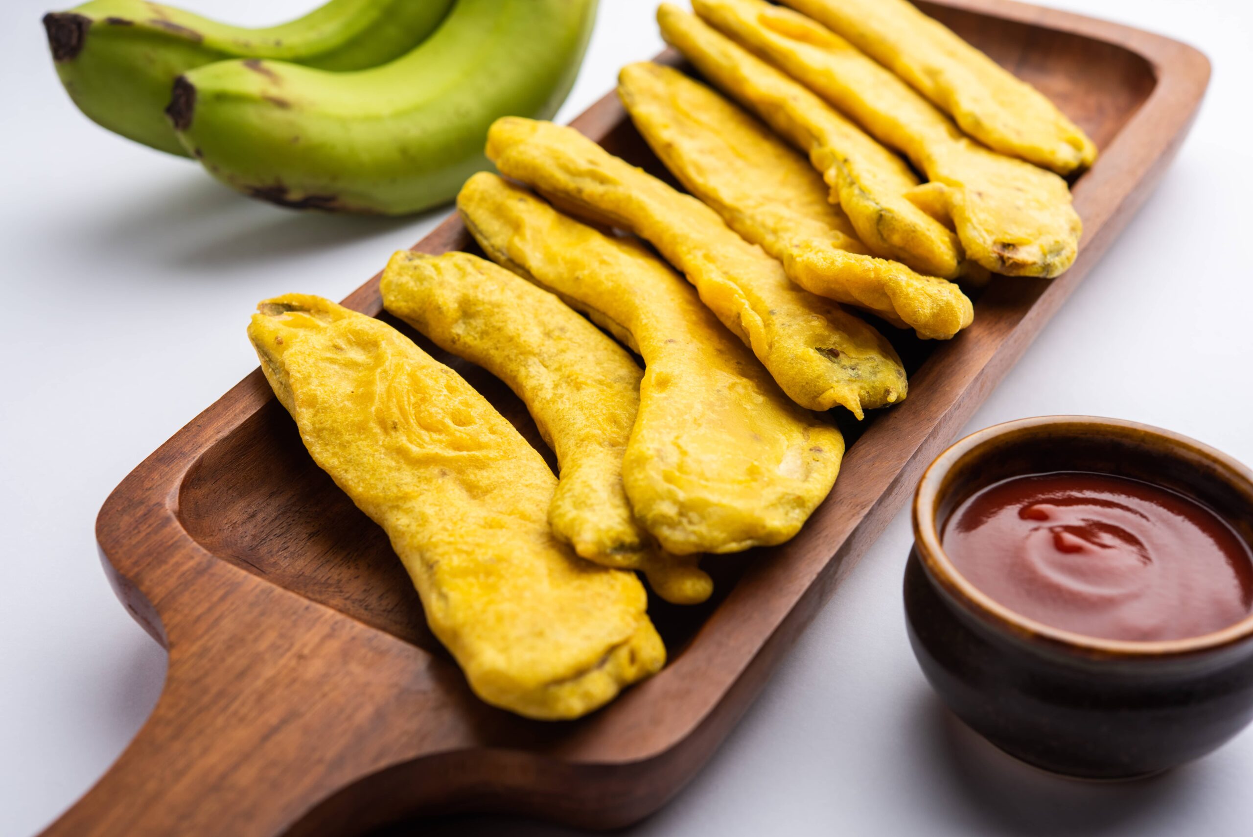 - 3 plátanos machos verdes, pelados y cortados en rodajas gruesas